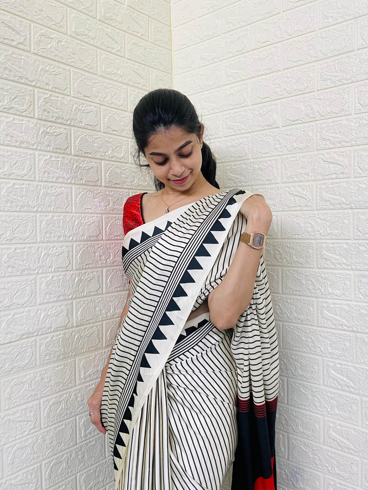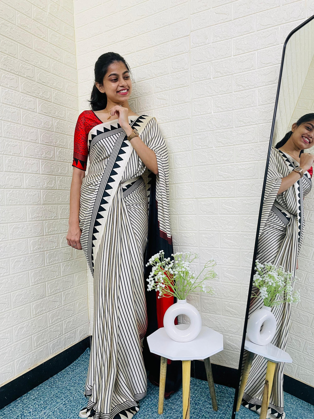 Calling all minimal-style lovers! ✨Our Bindu Saree is a soft stunner crafted in premium Semi Gaji Silk, designed for your effortless everyday elegance. Whether it’s your office function or a casual day out, this printed beauty adds a graceful charm to your presence—without doing too much. 💫
