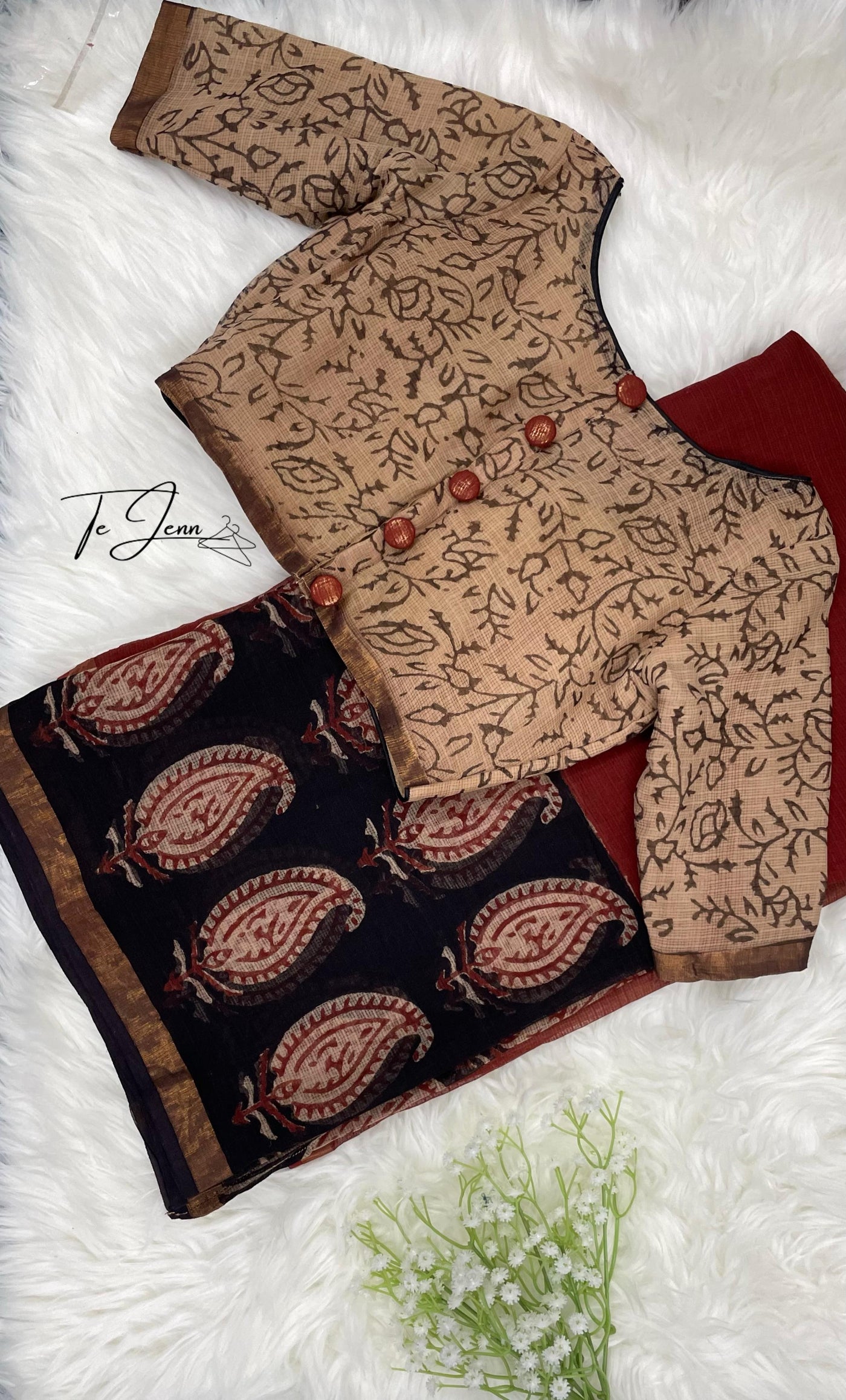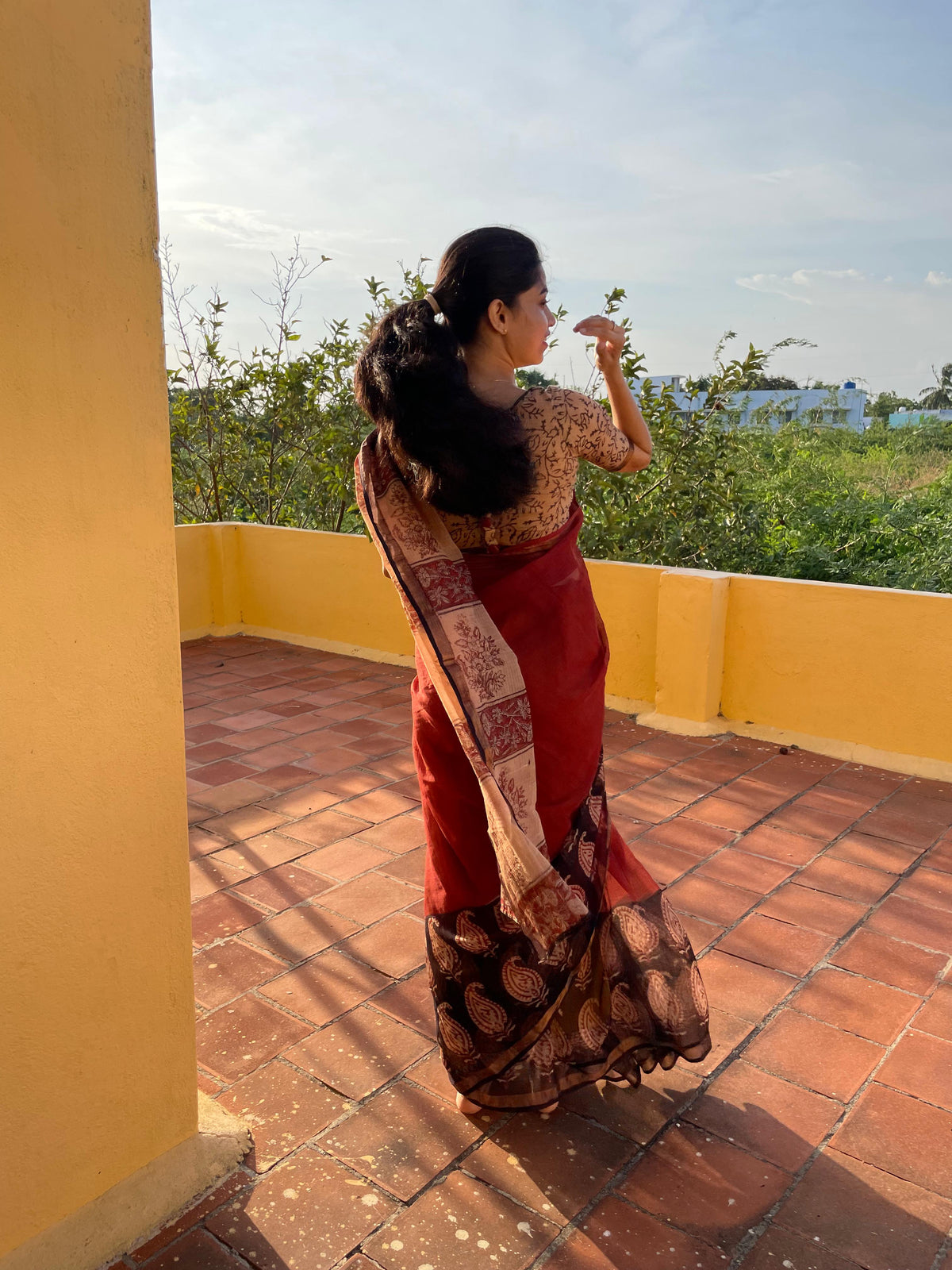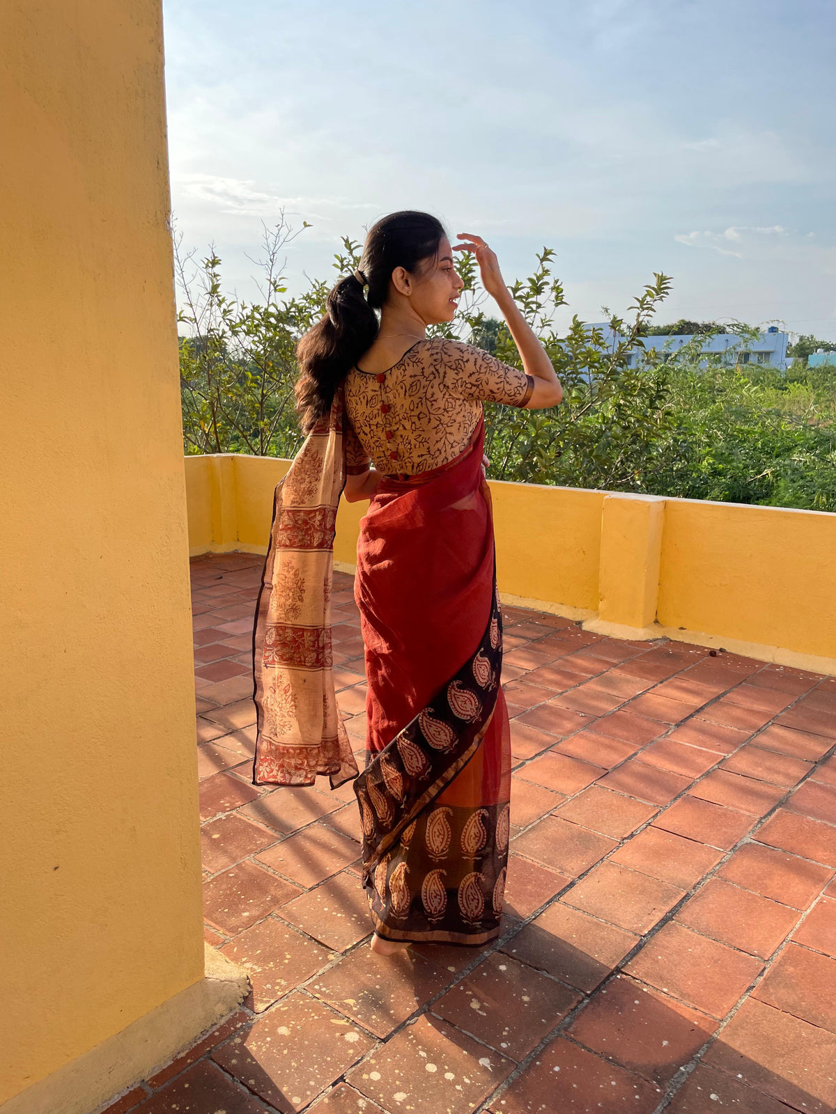 Say hello to breathable beauty! šOur Doria saree is crafted from airy Kota Doriya, bringing together tradition and lightness in every drape. The subtle hand block prints add a rustic, graceful charm ā perfect for those who love minimal art on fabric. Whether itās a regular workday or a calm casual outing, this saree wraps you in comfort without losing elegance. š